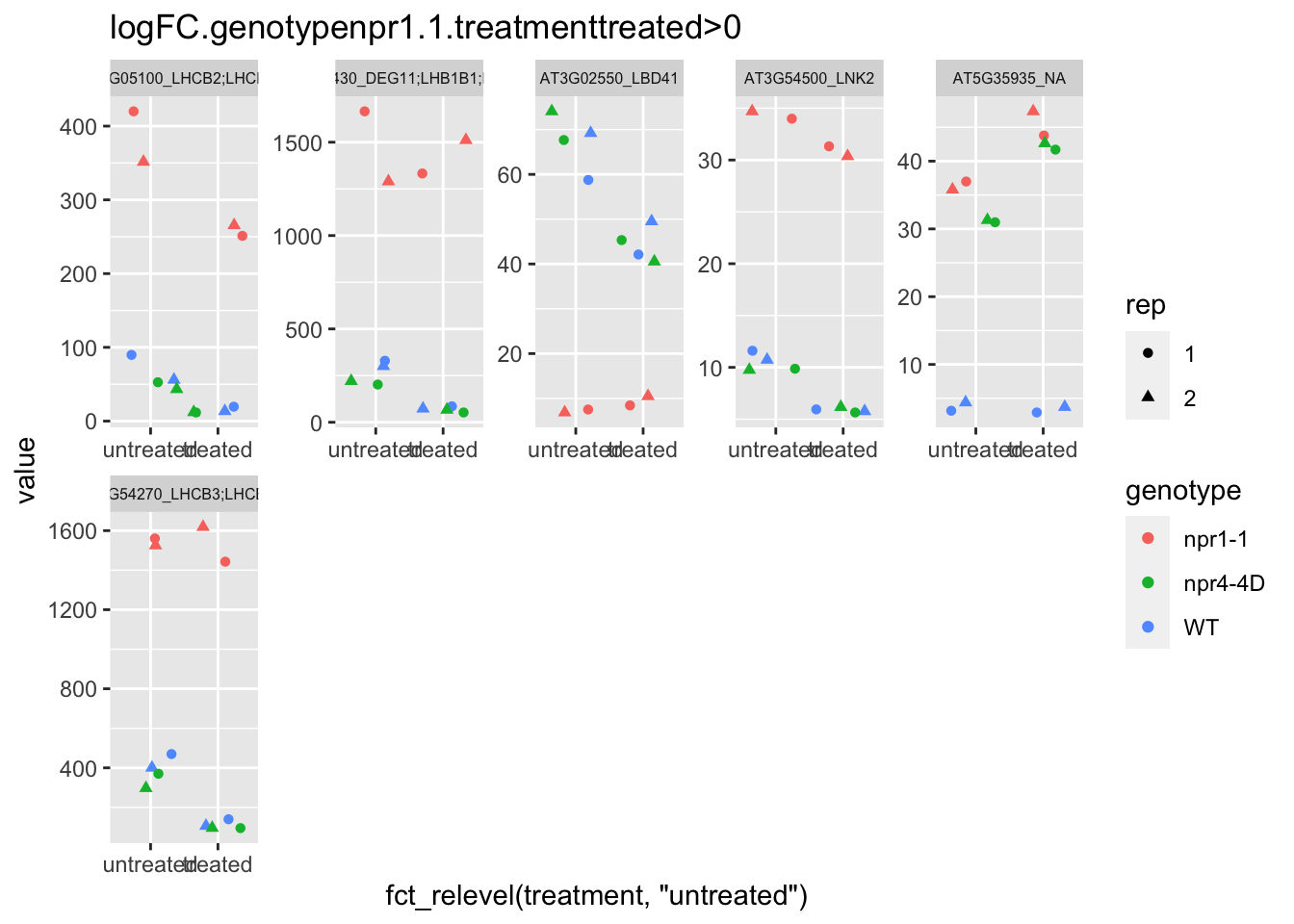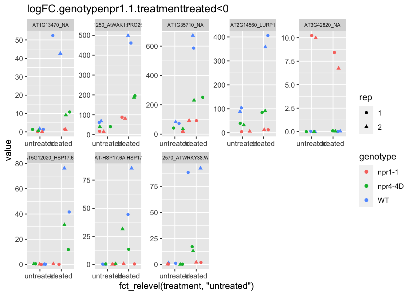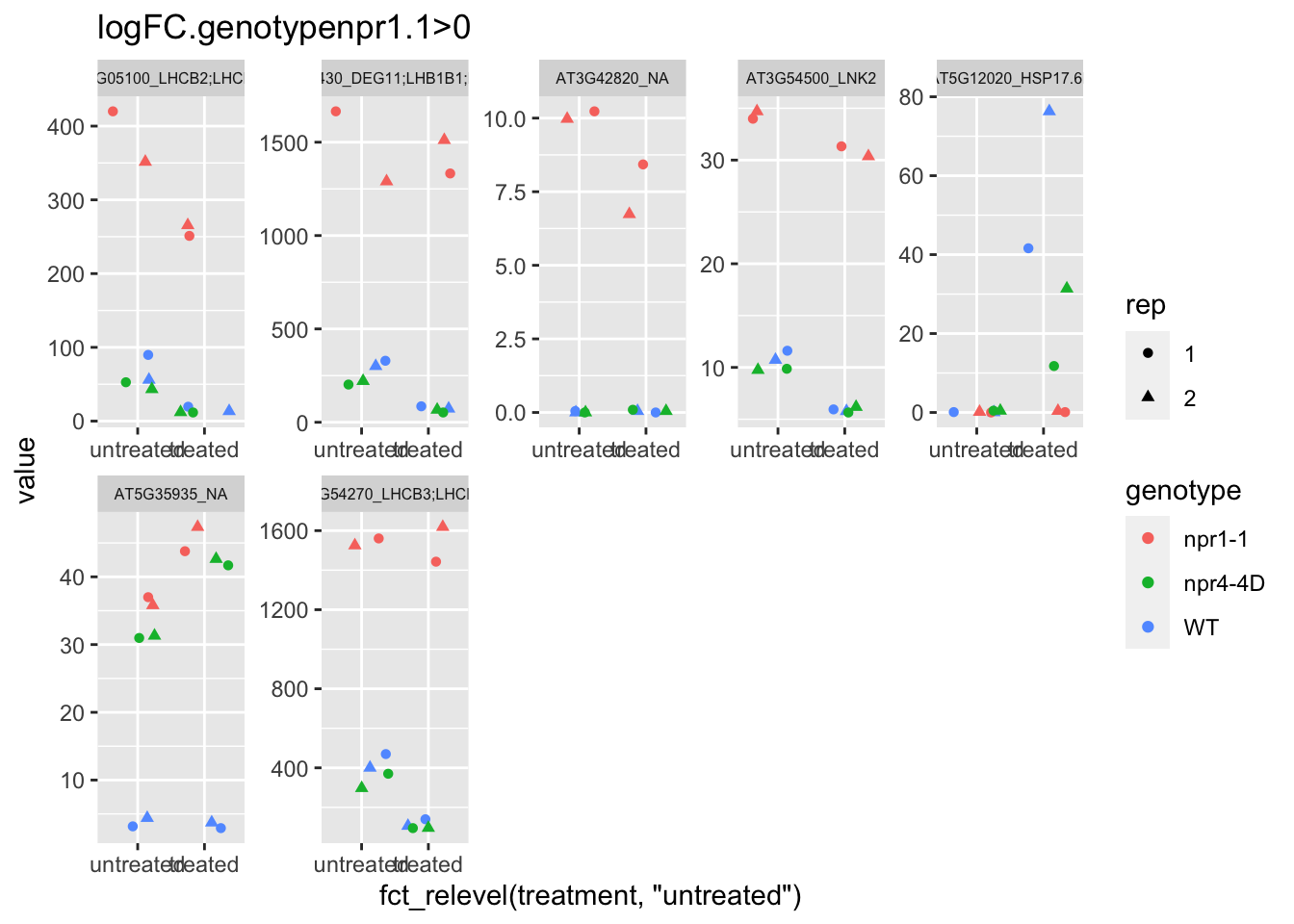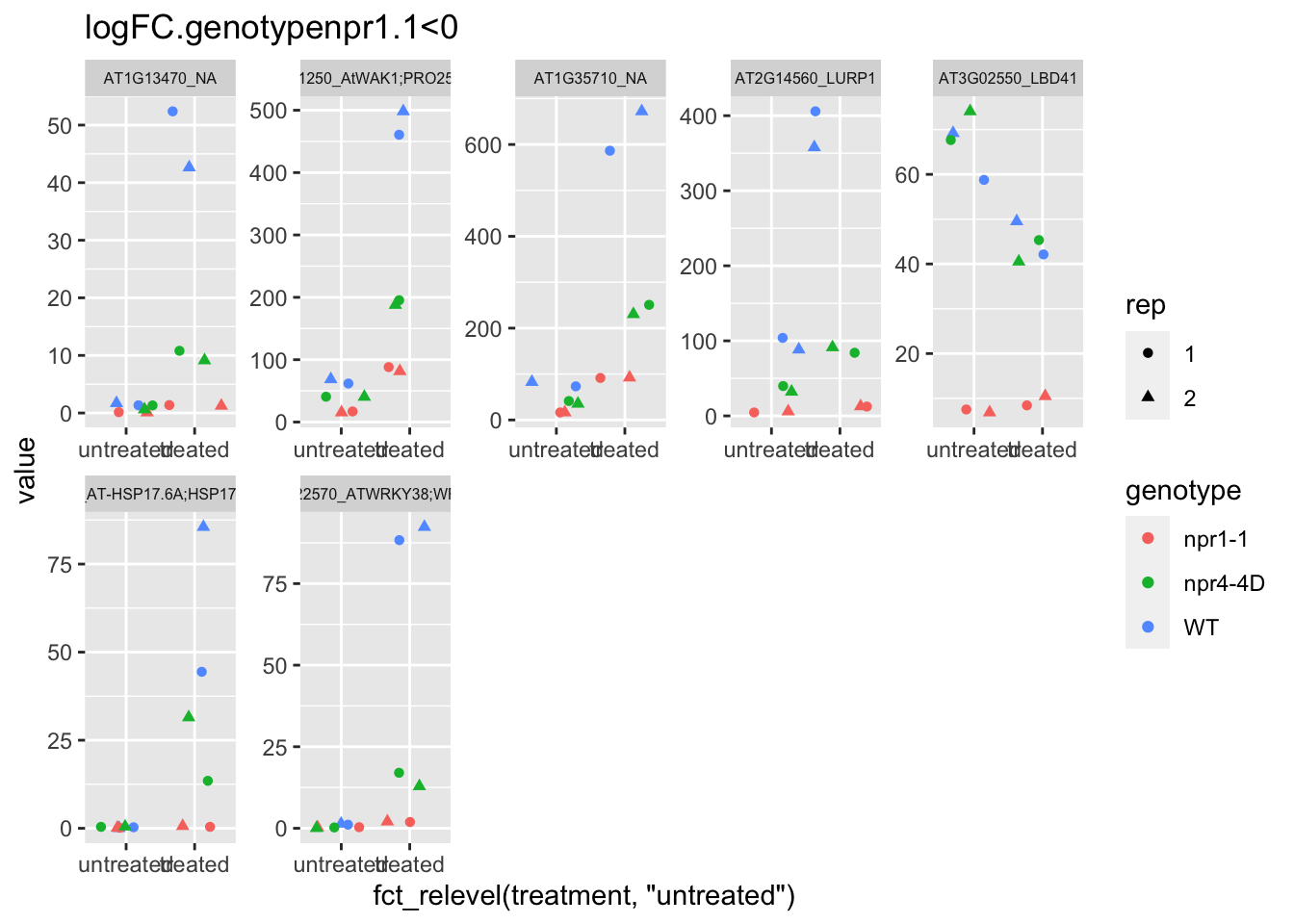 plot.data3 <- DEG.count.list2[["genotypenpr1_genotypenpr1.treatmenttreated.DEGs.int.rWT.rU"]] %>% left_join(cpm.wide,by=c("genes"="transcript_ID")) %>% unite(AGI_desc,c("AGI","symbol2")) %>% dplyr::select(-LR,-PValue,-genes)